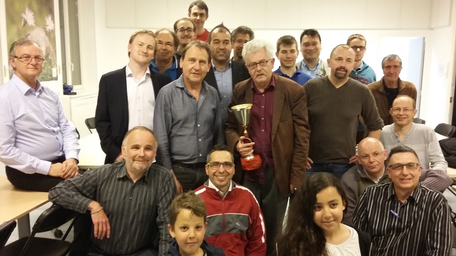 Voila le tournoi du confluent 2ème c’est fini et bis repetita pour Philippe ETIENNE qui l’emporte (quasiment caché sur la photo entre Stef et Alain). Triel remporte aussi le trophée du nombre de joueurs participants avec 15 joueurs. Merci à Sofiane et à Ines (en bas sur la photo), sans qui ce résultat n’eut pas été possible. Enfin c’est le club d’Acheres qui remporte le tournoi avec 28,5 points et la coupe avec que Christophe tient bien haut.