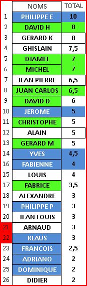 Philippe Etienne (en tête du classement) , Jérôme, Yves, François, Philippe Puschmann et peut-être Stef y participeront. Il reste bien-sur des places.