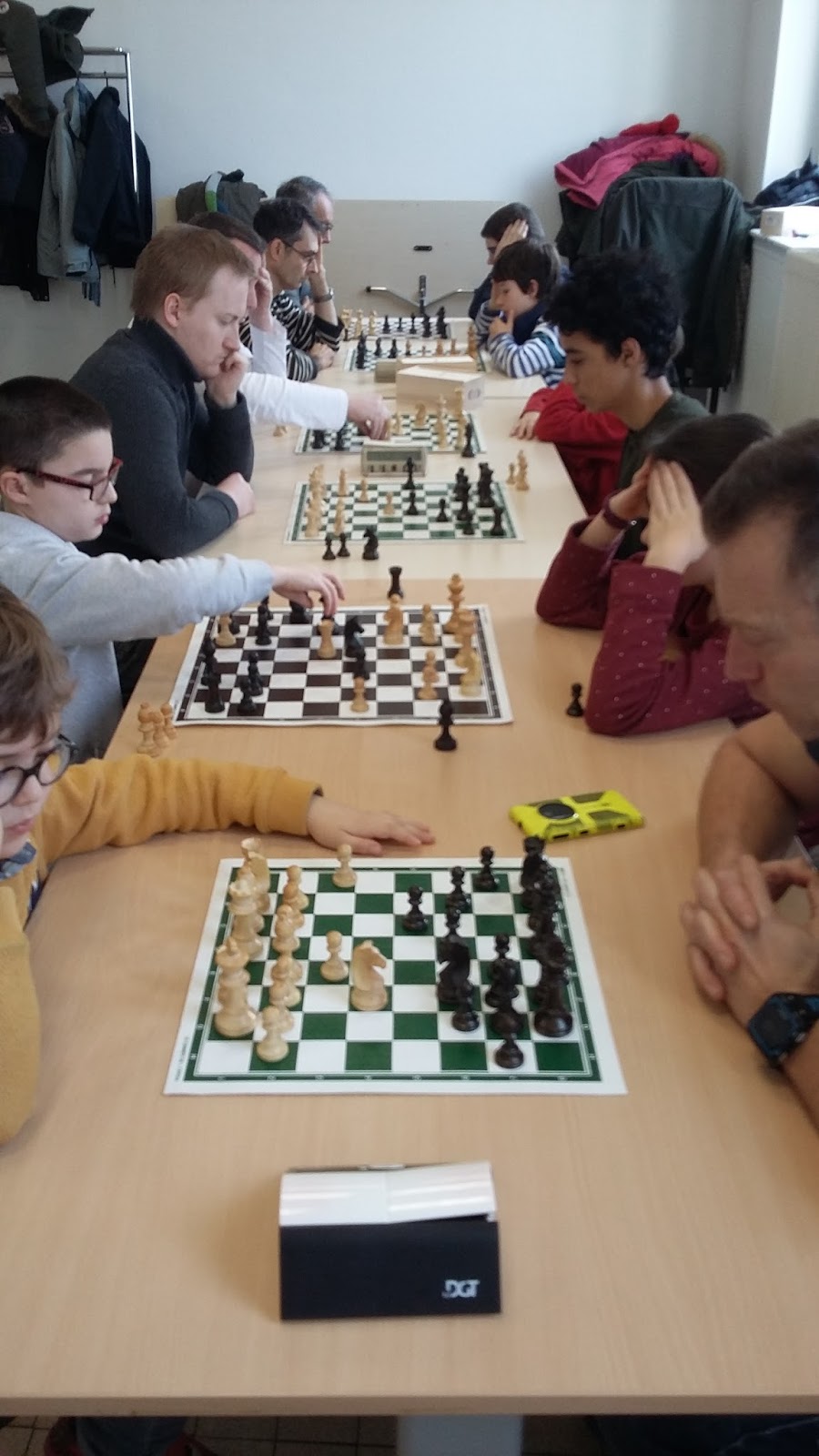 Notre matinée échecs à la bibliothèque du samedi 10 février a été annulée en raison d’un aéroport de Roissy récalcitrant au froid. Il nous fallait au moins un tournoi pour nous en remettre. Samedi 17 février c’était le premier week-end des vacances, et vous avez été 22 à venir ! Adultes, enfants et parents. 3 finales par catégorie avec comme vainqueurs YVES, EDGAR et THOMAS (à moins que ce ne soit l’inverse) et finalistes GAUTHIER JULIEN et CHARLES (à moins que ce ne soit l’inverse). On parle souvent de « manger » les pièces adverses, expression au ses figuré. Nous avons repris l’expression mais au sens propre. Avec interdiction de manger la dame en chocolat, au cas où elle aurait resservi.Samedi 17 février Tournoi d’hiver
