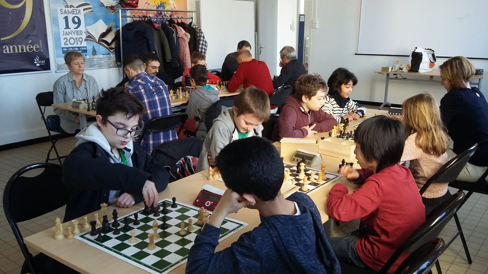Samedi 23 février, 20 ,joueuses et joueurs se sont affrontés au cours de 5 rondes en 2 X 10 minutes KO. C’est un spécialiste de cette cadence qui l’emporte en la personne d’ADRIANO avec 5V. GUILLAUME avec 4V prend la 2ème place devant YVES et ALEXANDRE (3,5)Bravo à LUCE, la maman de Jules qui avec 3V a bien mérité la coupe des néophytes ! Bravo aussi à PAUL qui après des débuts difficiles a vaillamment défendu ses chances.